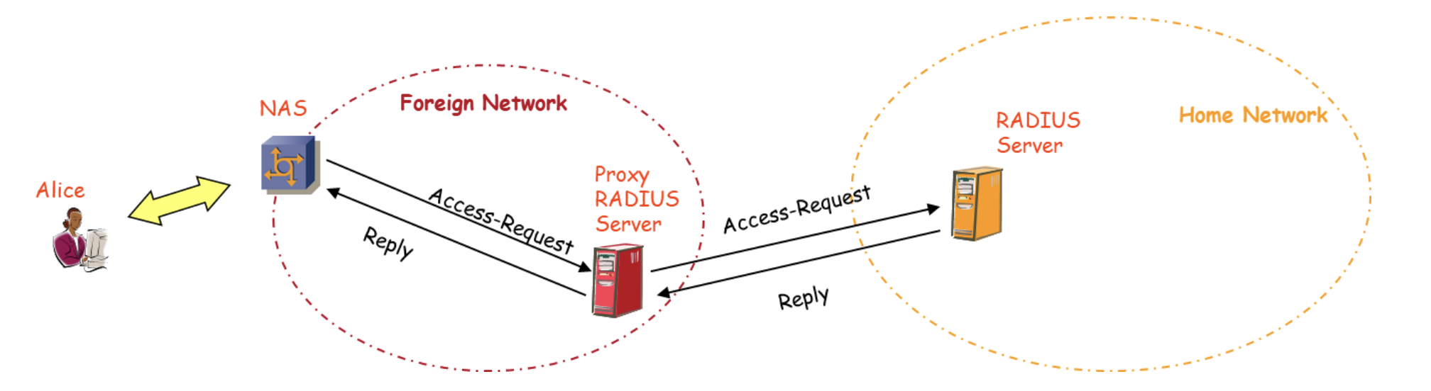 - Il Proxy inoltra l’Access-Request al Server RADIUS della Home Network.
