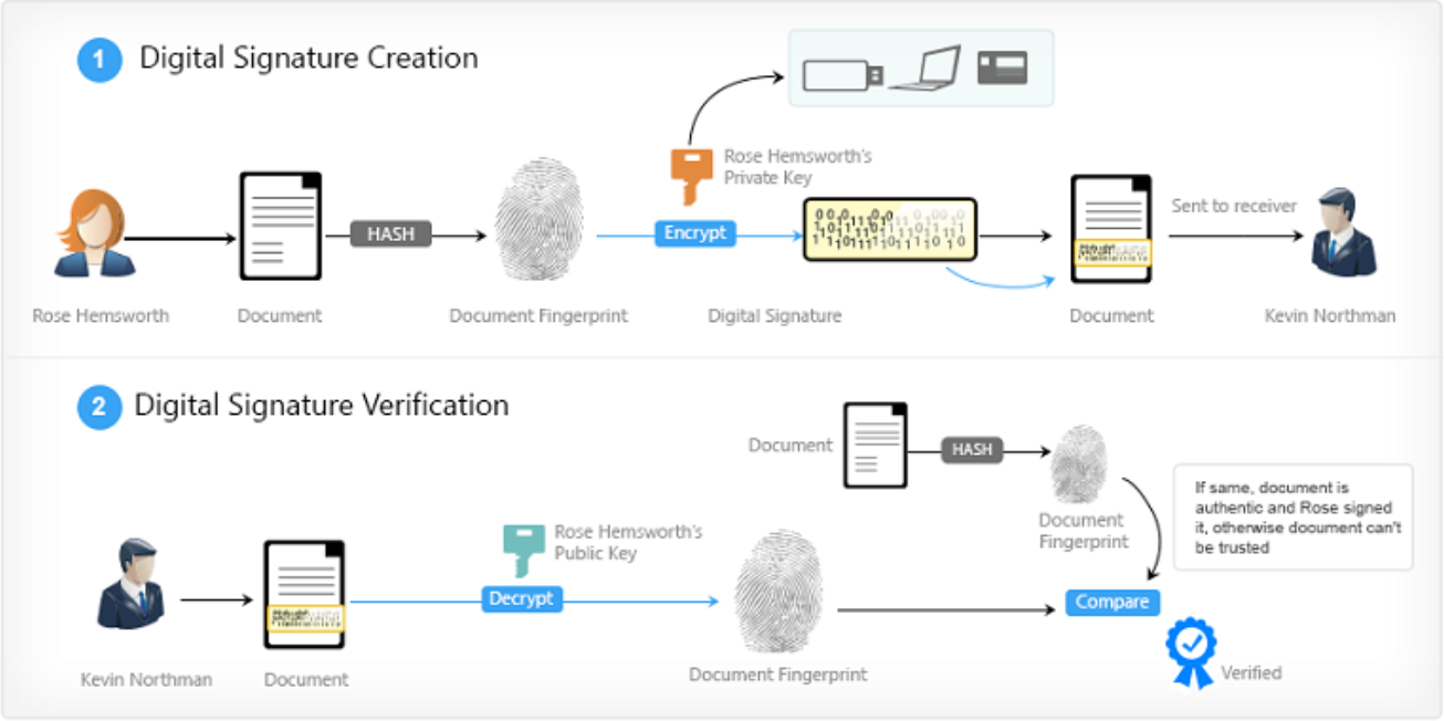 - Se i due hash non corrispondono, la firma non è valida e il documento è stato alterato o la firma non è autentica.